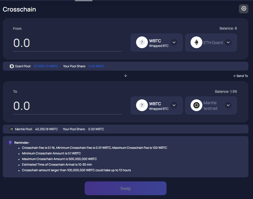 7.2WBTC를 ETH Goerili에서 Mantle testnet으로 전송